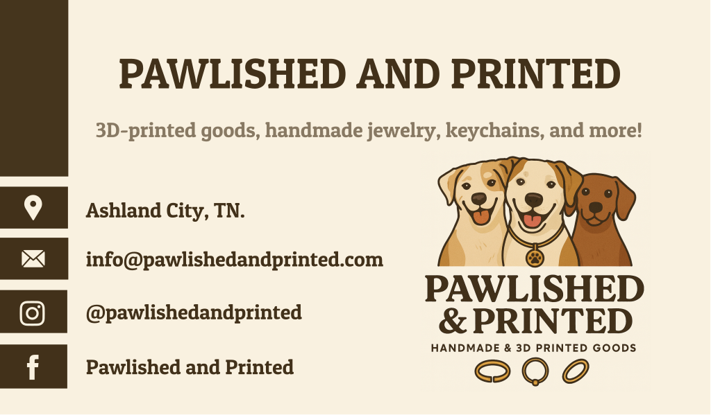 We sell handmade jewelry and accessories, various 3D printed items, and occasionally pet bandanas. You can find us on FB